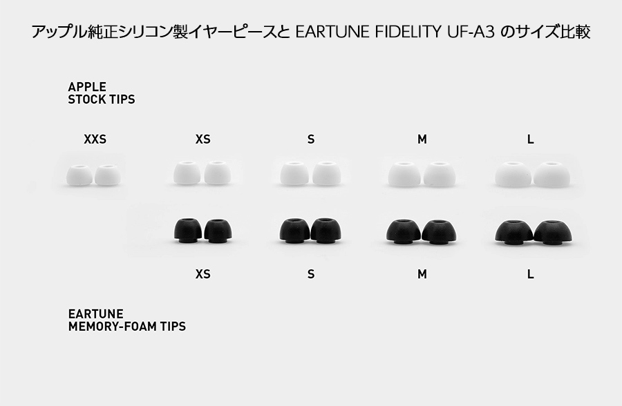 *参考に、アップル純正シリコン製イヤーピースとのサイズ比較図を参照下さい